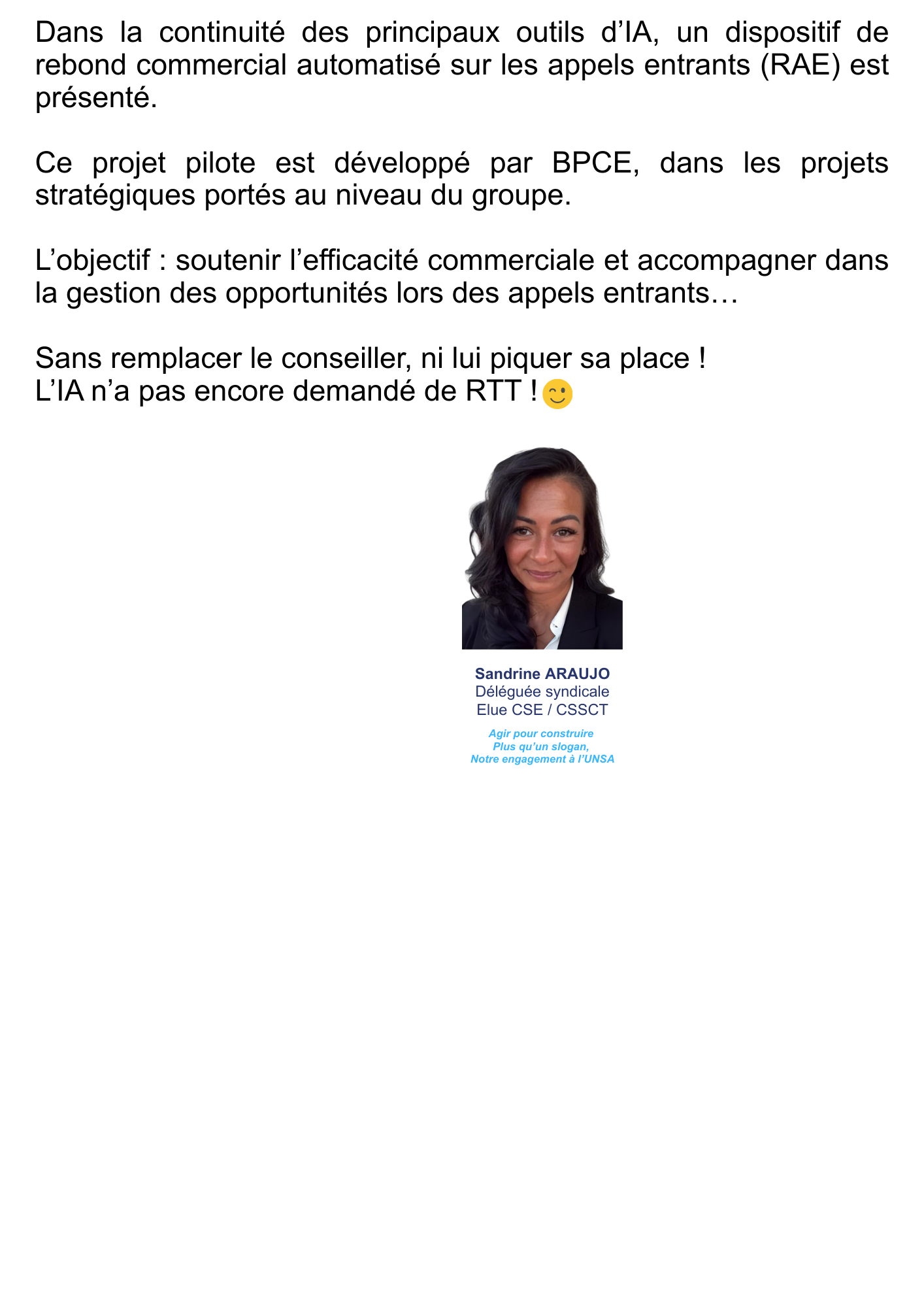 CSE du 29/01/2026 : Pilote de la nouvelle solution conseiller IA : Rebonds Appel Entrant